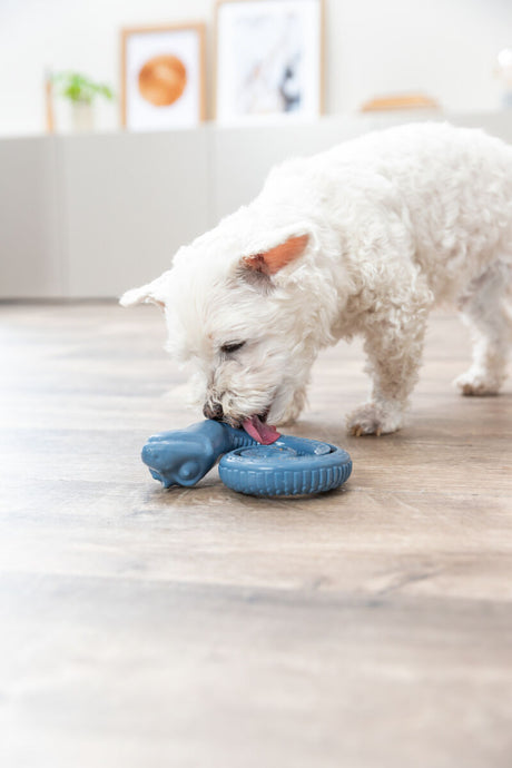 Für manche Vierbeiner ist Kauen die beste Entspannung: Fülle robuste Beschäftigungsspielzeuge mit passenden Snacks oder biete Kauartikel an, die dein Hund gut verträgt und mag.