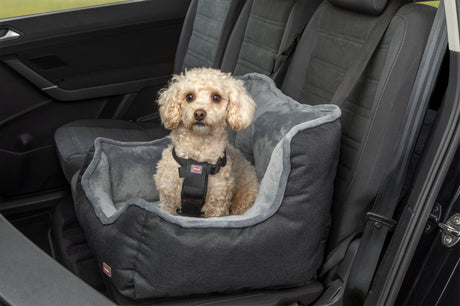 Von Autogeschirren über Sicherheitsgurte bis hin zu Autoschondecken – hier findest du alles für Autofahrten mit deinem Hund.