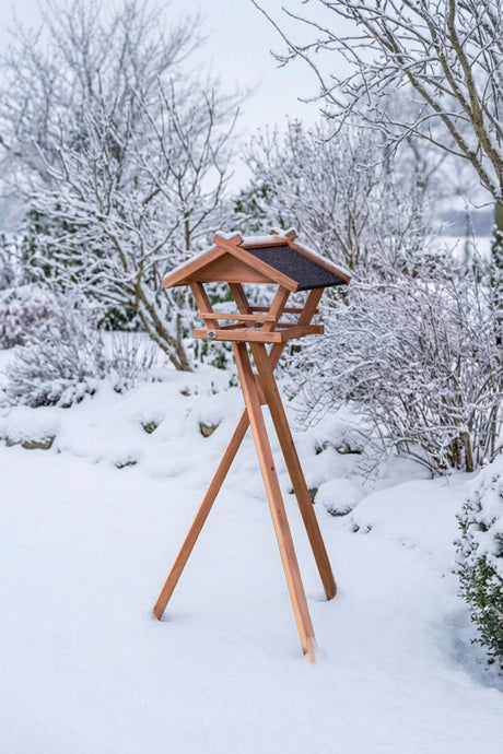 Mit einem stabilen Vogelfutterhaus schaffst du einen wettergeschützten Futterplatz für viele Wildvogelarten im heimischen Garten.