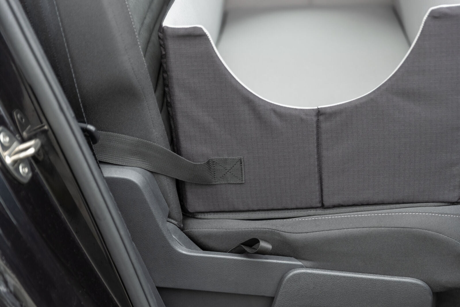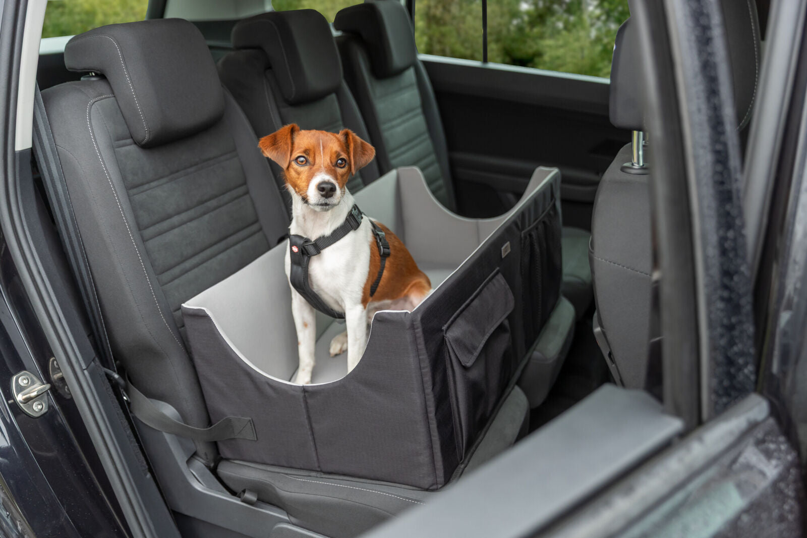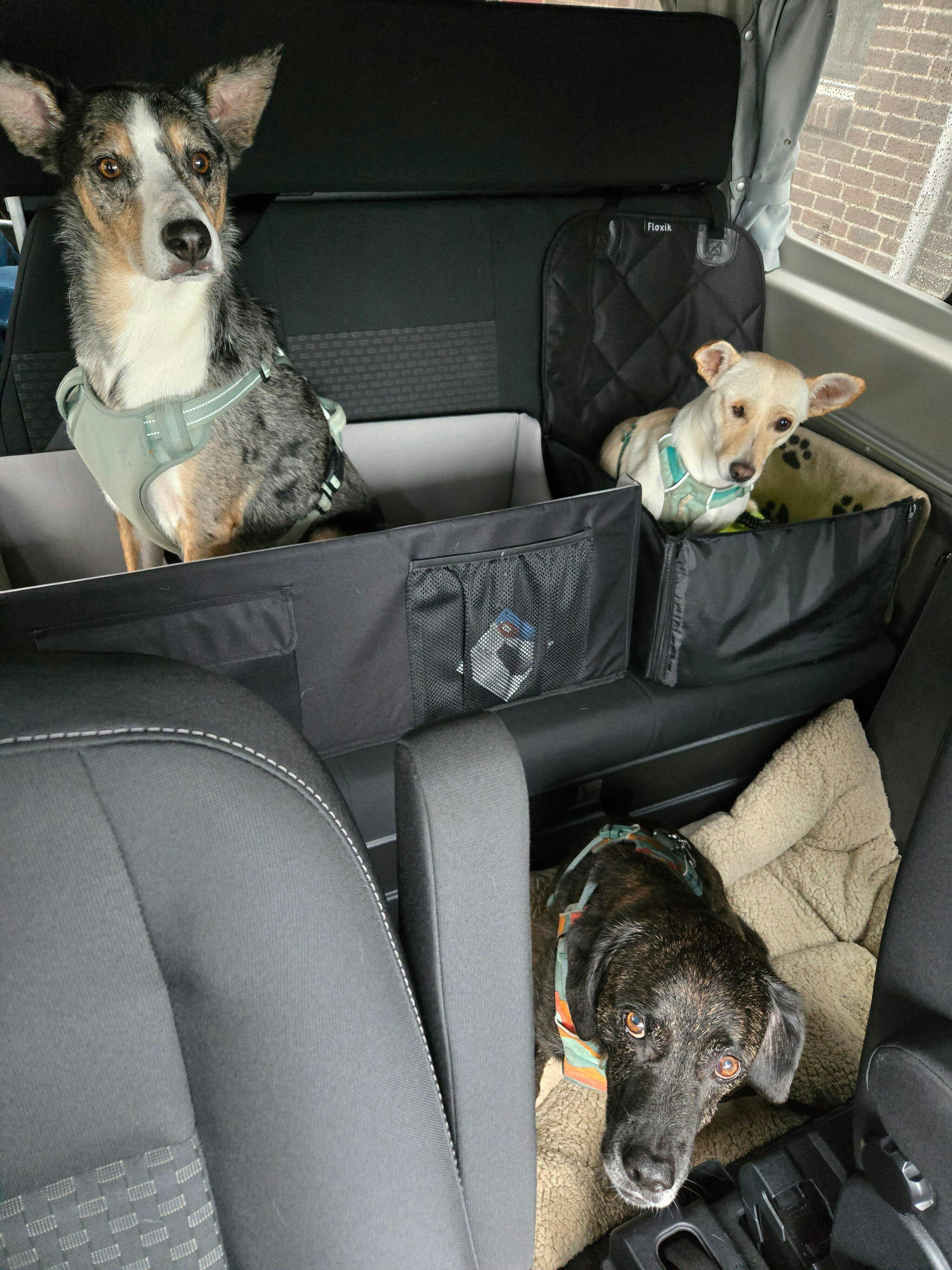 - Gurtdurchführungen zum Anschnallen von bis zu zwei Hunden
