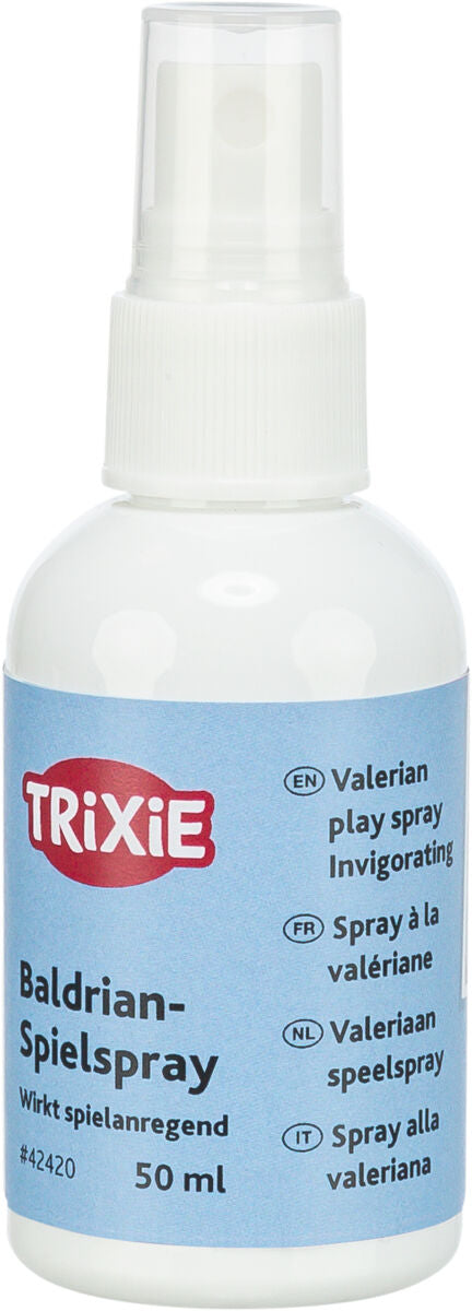 Baldrian wirkt auf Katzen euphorisierend und anregend. Besprühst du das Spielzeug oder die Decken deiner Samtpfote mit unserem Baldrian-Spielspray, wird dadurch ihr natürlicher Spieltrieb angeregt. Damit das Spray seine berauschende Wirkung voll entfalten kann, solltest du es vor Gebrauch gut schütteln und höchstens ein- bis zweimal pro Woche anwenden.