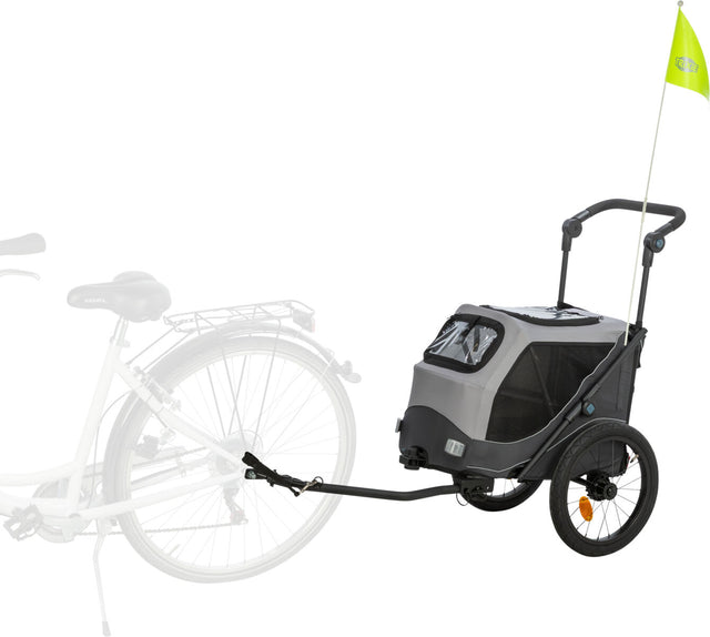 Fahrradanhänger für Hunde, schnell zusammenklappbar - grau / Art.-Nr.: 12796, Größe: M, Maße: 63 × 95 × 90/132 cm, bis zu: 22 kg, Artikelgewicht: 12,5 kg, Innenmaße: 46 × 50 × 67 cm