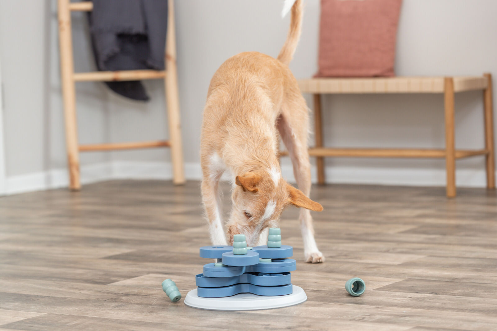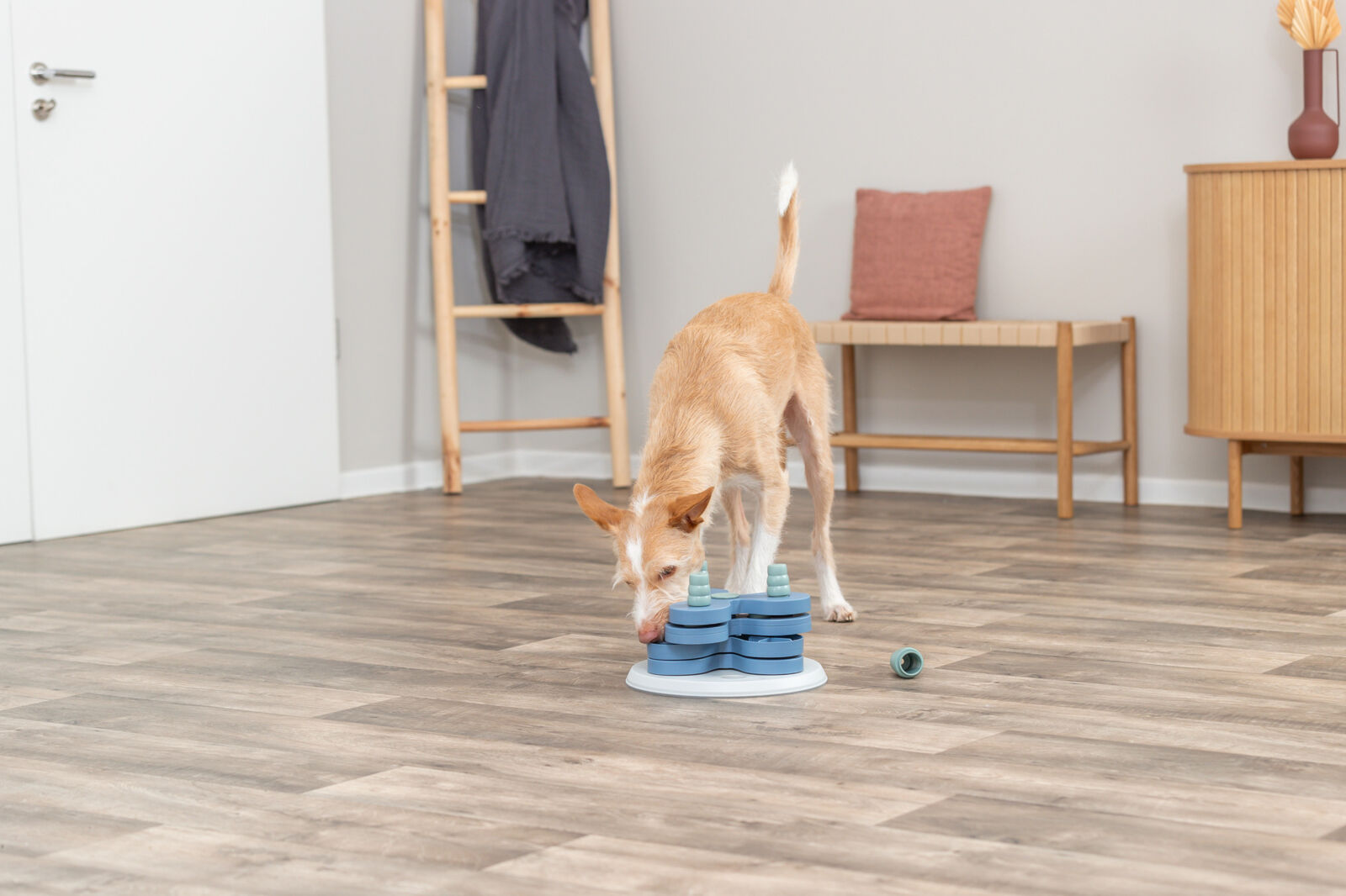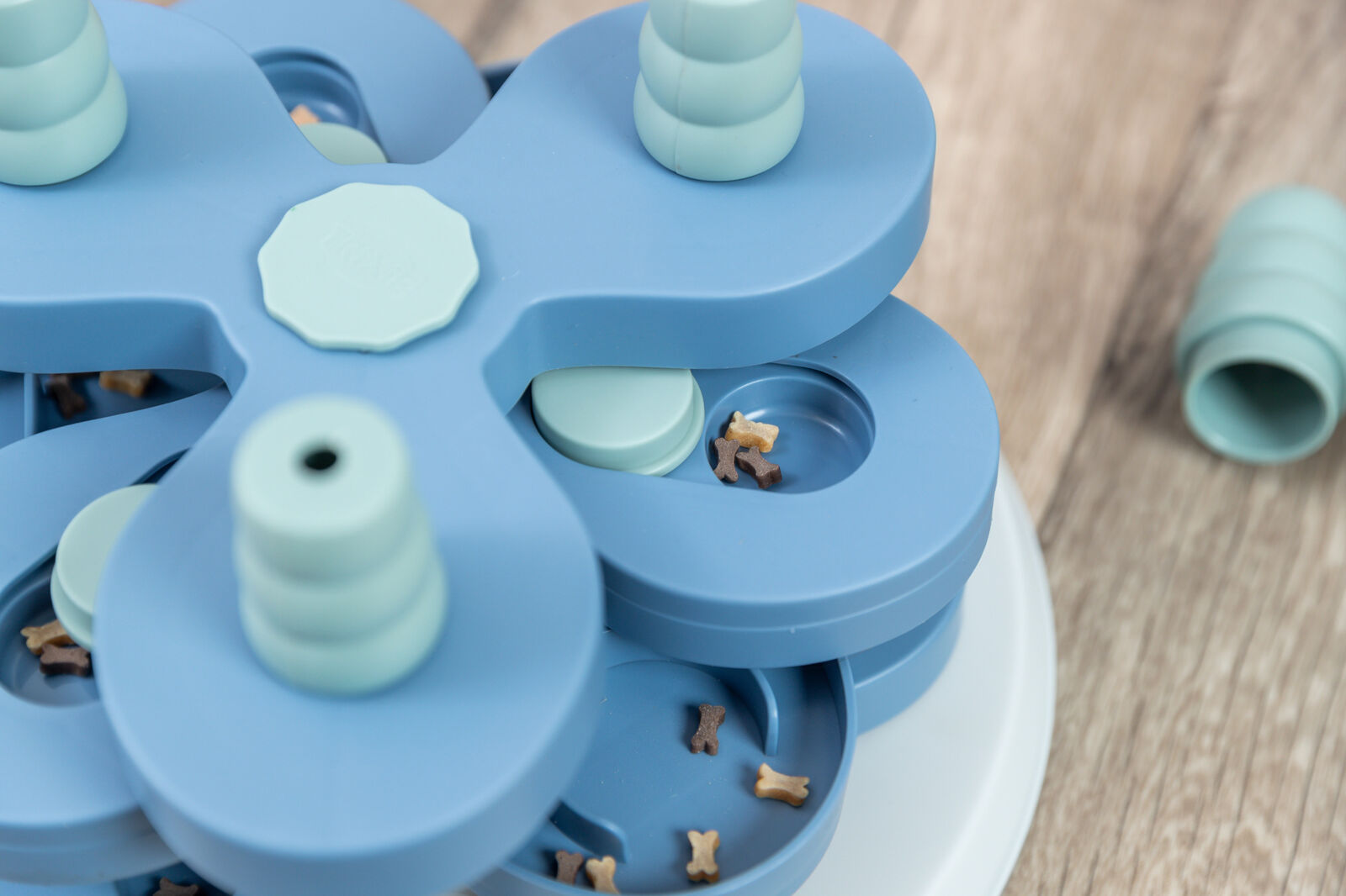 „Flower Tower" ist ein Dog Activity-Spielzeug für besonders helle Köpfe, das zudem die Bindung zwischen Hund und Halter stärkt. Der Spielturm bietet Schnüffelspaß mit sechs Kegeln sowie unterschiedlichen Ebenen, Vertiefungen und Schiebedeckeln, so dass dein Vierbeiner sich geistig so richtig auspowern kann. Das Ziel: Er soll lernen, wie und in welcher Reihenfolge er die einzelnen Elemente verschieben und umstoßen muss, um an seine Belohnungen zu gelangen. Wenn du deine Fellnase besonders herausfordern willst, kannst du den Schwierigkeitsgrad des Spiels erhöhen, indem du die Kegel als Stopper benutzt.Viele hilfreiche Tipps für ein optimales Training findest du übrigens in der beigelegten Anleitung. Und nicht vergessen: Damit dein Hund möglichst lange etwas von seinem Intelligenz-Spielzeug hat, solltest du es regelmäßig in der Spülmaschine reinigen.