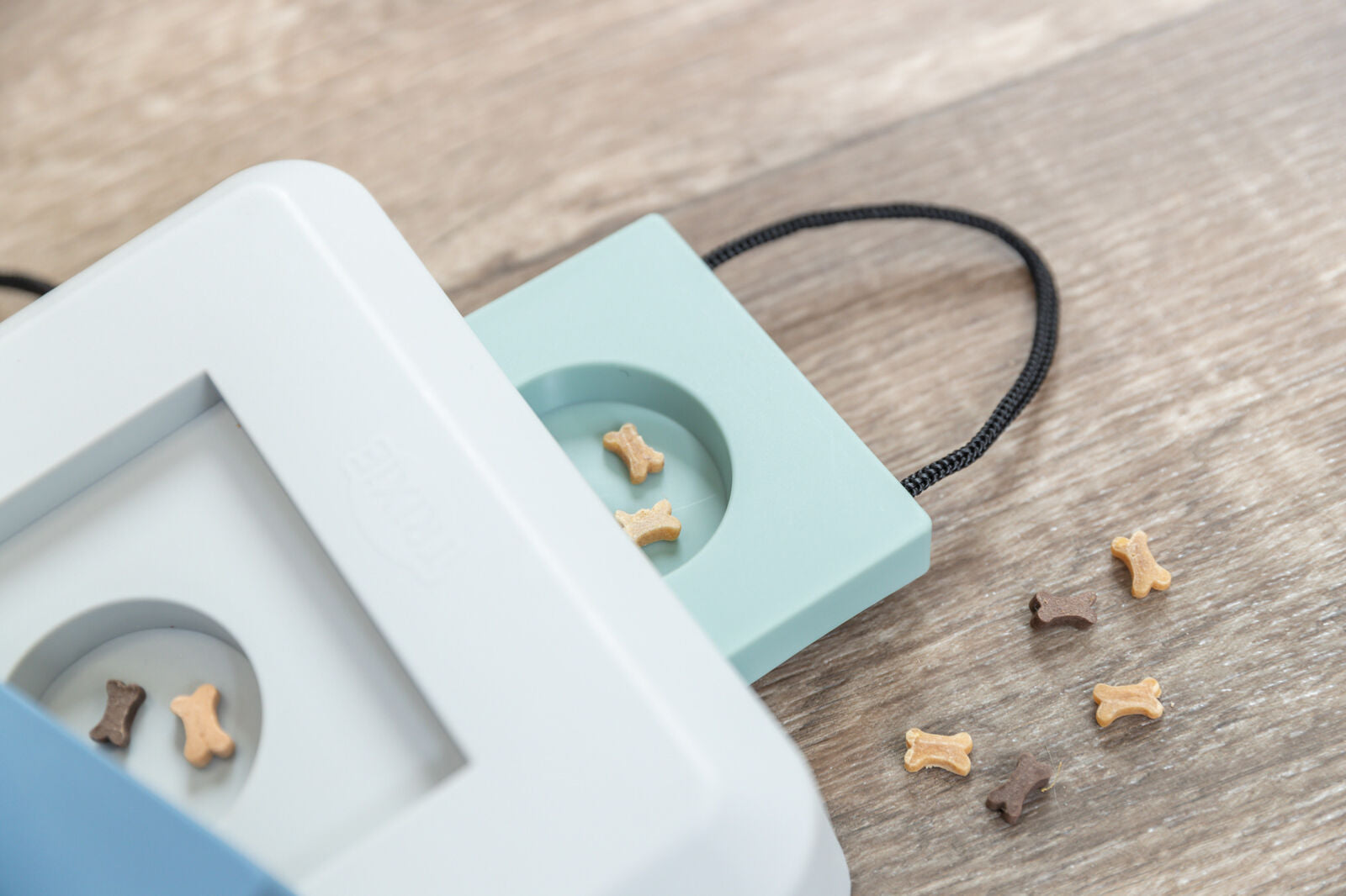 Du möchtest deinen Vierbeiner spielerisch herausfordern? Unsere „Gamble Box" sorgt für ausgiebigen Spielspaß für Hunde aller Altersklassen. Das Activity-Spiel besitzt zwei Schubladen und ein Fach an der Oberseite, wo Leckerlis oder Trockenfutter versteckt werden können. Mithilfe der Schnauze oder seinen Pfoten soll dein Hund den Deckel anheben und die Schubladen öffnen, um seine Belohnung zu erhalten.