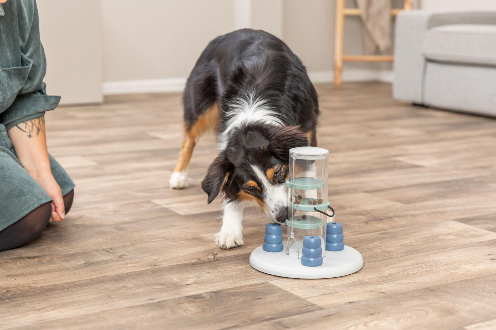 Hunde sind sehr intelligente und wissbegierige Tiere, die gerne beschäftigt werden wollen. Der „Gambling Tower“ eignet sich besonders gut für fortgeschrittene Fellnasen. Er besteht aus einem Turm mit drei Einschüben und zusätzlich drei Kegeln, unter denen du Leckerchen deiner Wahl verstecken kannst. Dein Tier versucht nun, die Einschübe mit der Pfote oder der Schnauze herauszuziehen und die Kegel umzustoßen, um so an die begehrten Snacks zu gelangen.