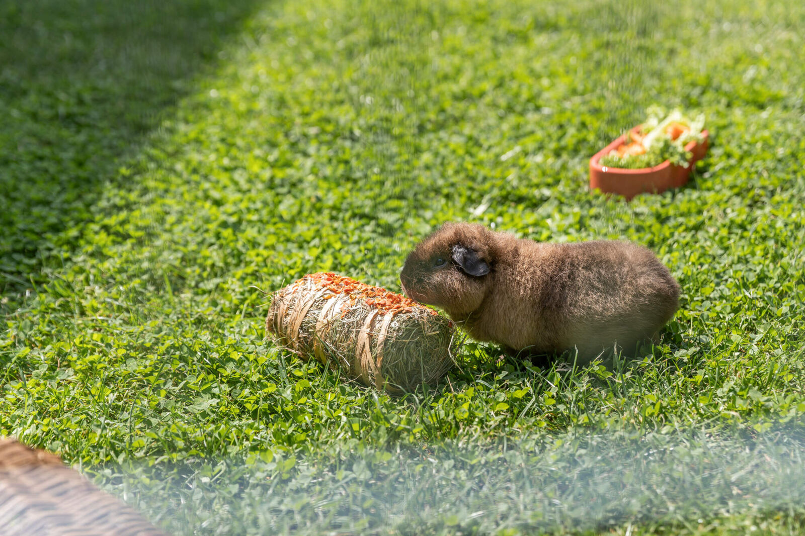Zusammensetzung: Heu (90 %), Karotten (5 %), Kürbis (5 %) | 0 % Zuckerzusatz | Kühl und trocken lagern.