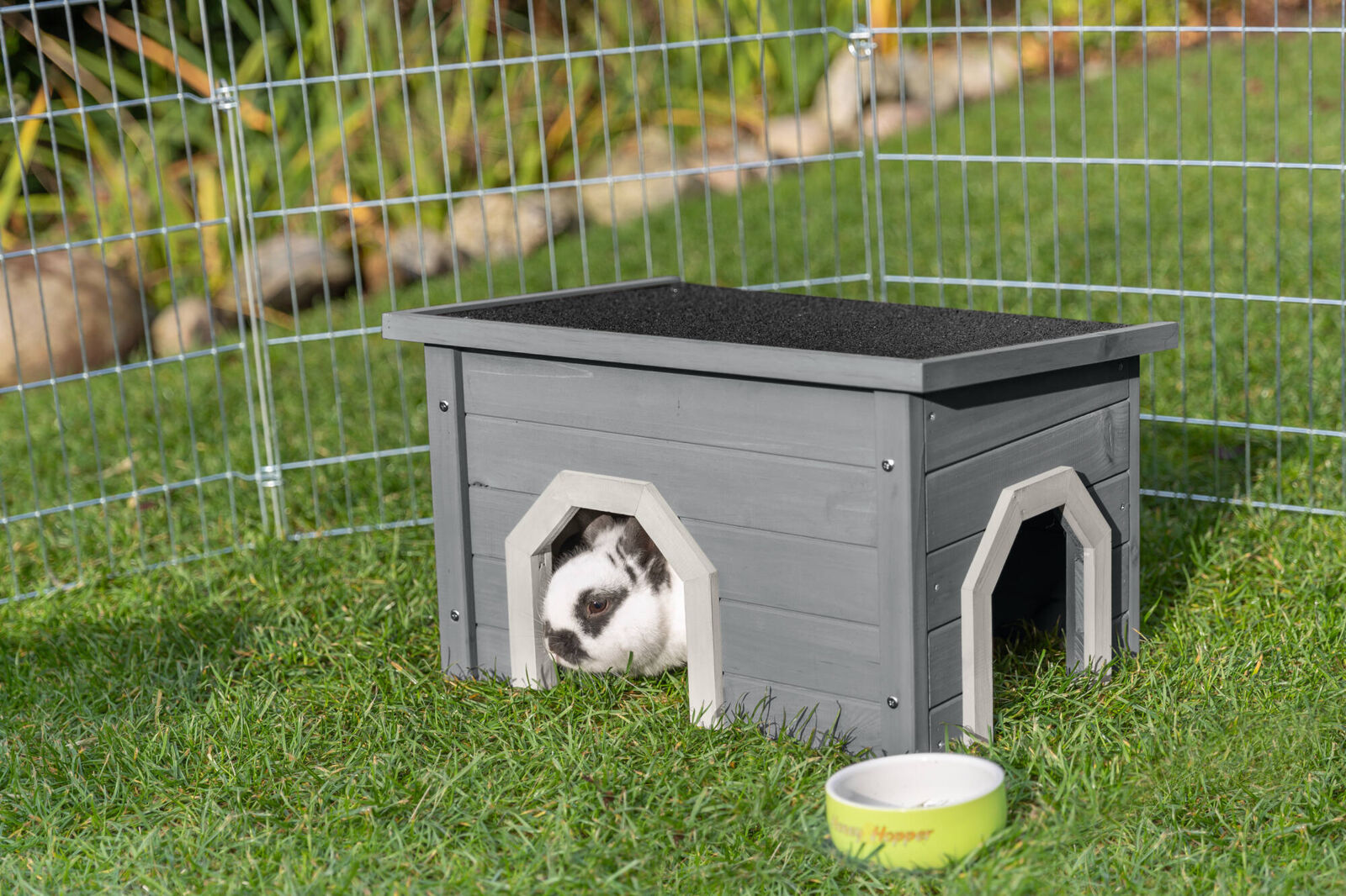 Kleintierhaus - grau-grün / Art.-Nr.: 62397, Maße: 50 × 30 × 37 cm, für z. B.: Kleinnager, Kaninchen