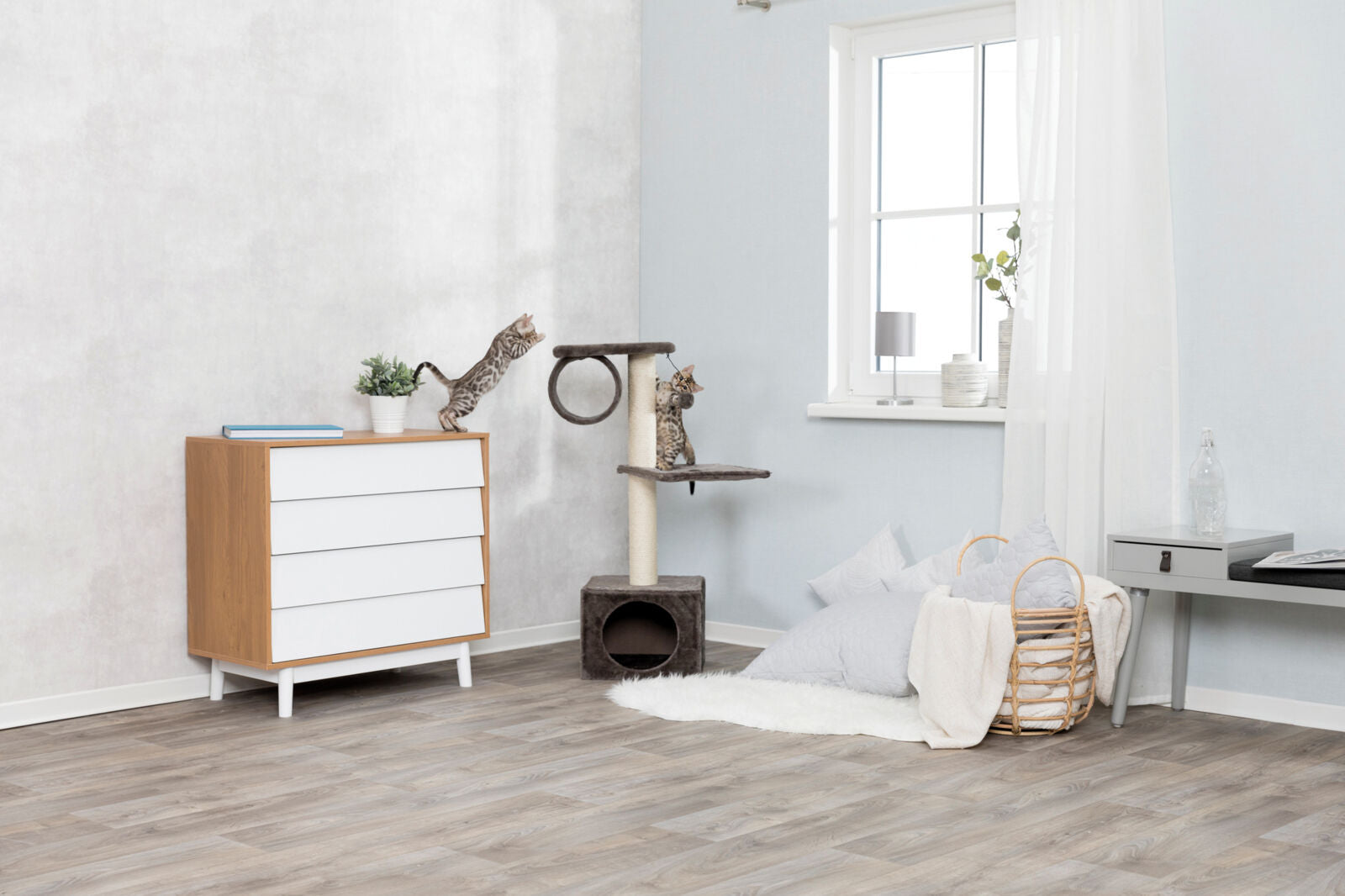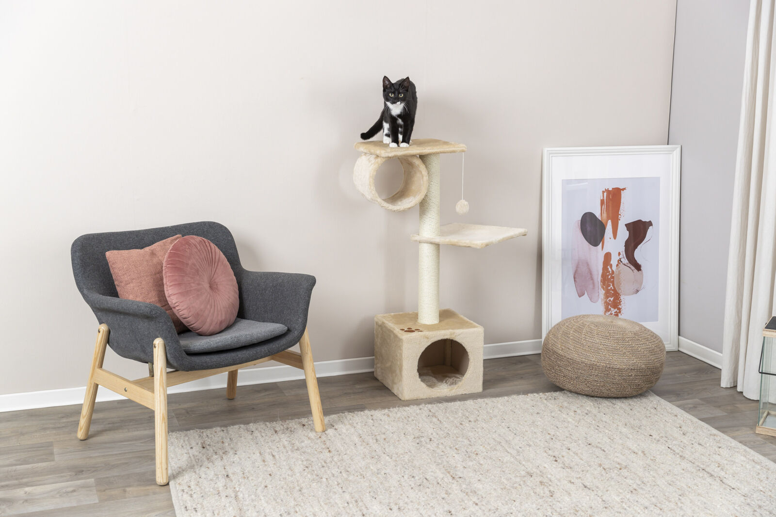Kratzbaum San Fernando - beige / Art.-Nr.: 43951, Grundfläche: 36 × 36 cm, Höhe: 106 cm, Stamm: ø 9 cm, Maße: 106 cm, Gewinde: M8