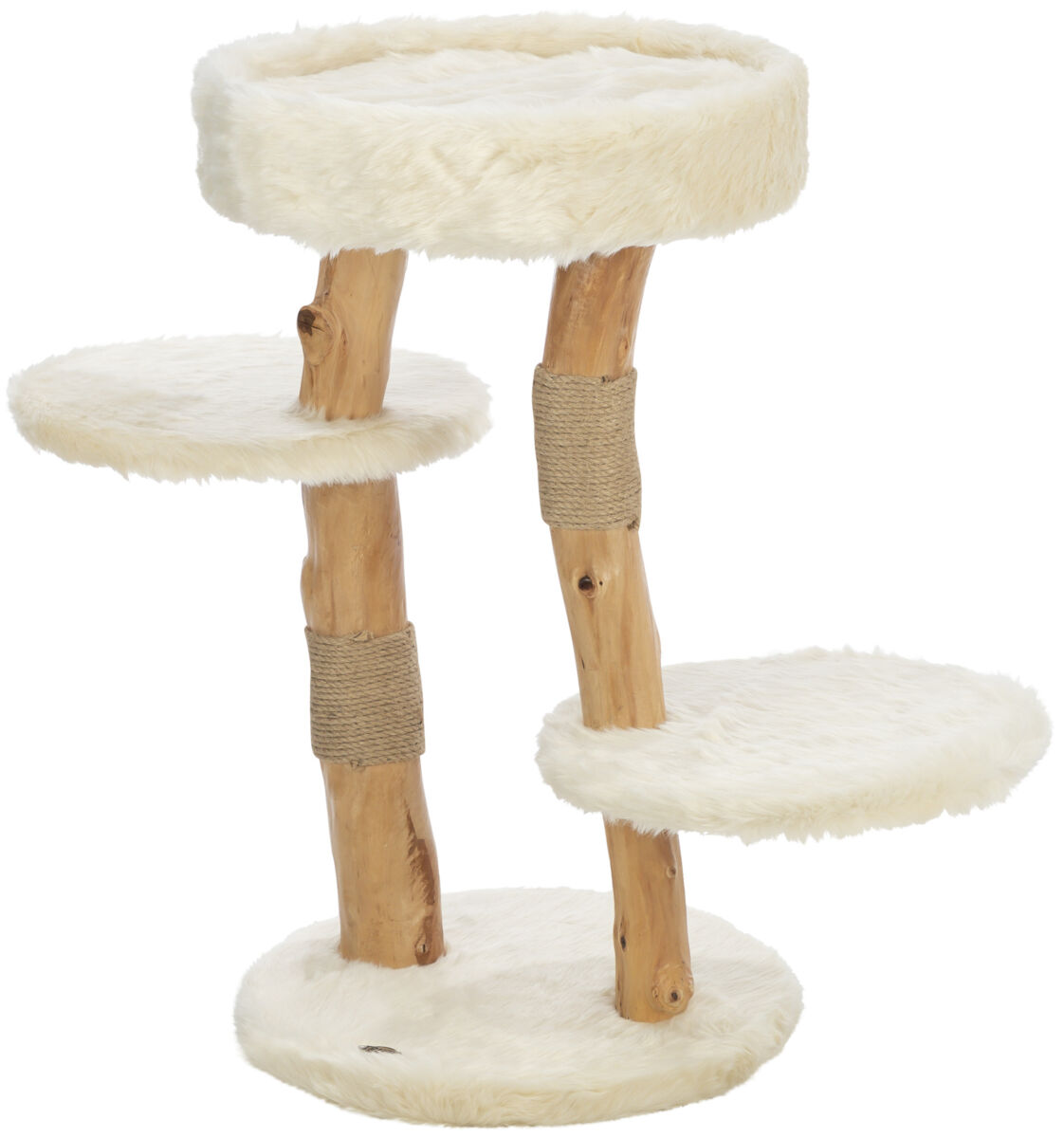 - Sisal: ø 5 mm/Langhaar-Plüsch (Polyester): 450 g/m²/Echtholzstämme aus Birnenholz