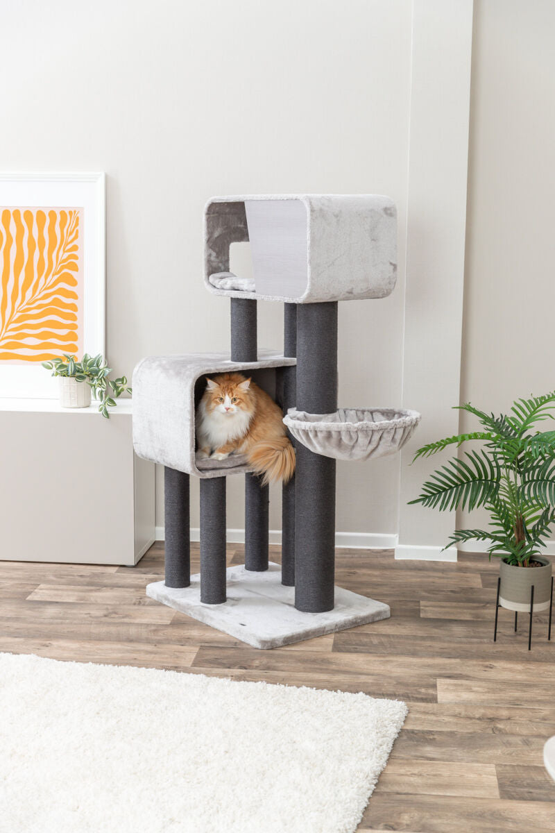 Kratzbaum XXL Rafael - grau / Art.-Nr.: 48156, Grundfläche: 78 × 58 cm, Höhe: 156 cm, Stamm: ø 10 cm, Maße: 156 cm