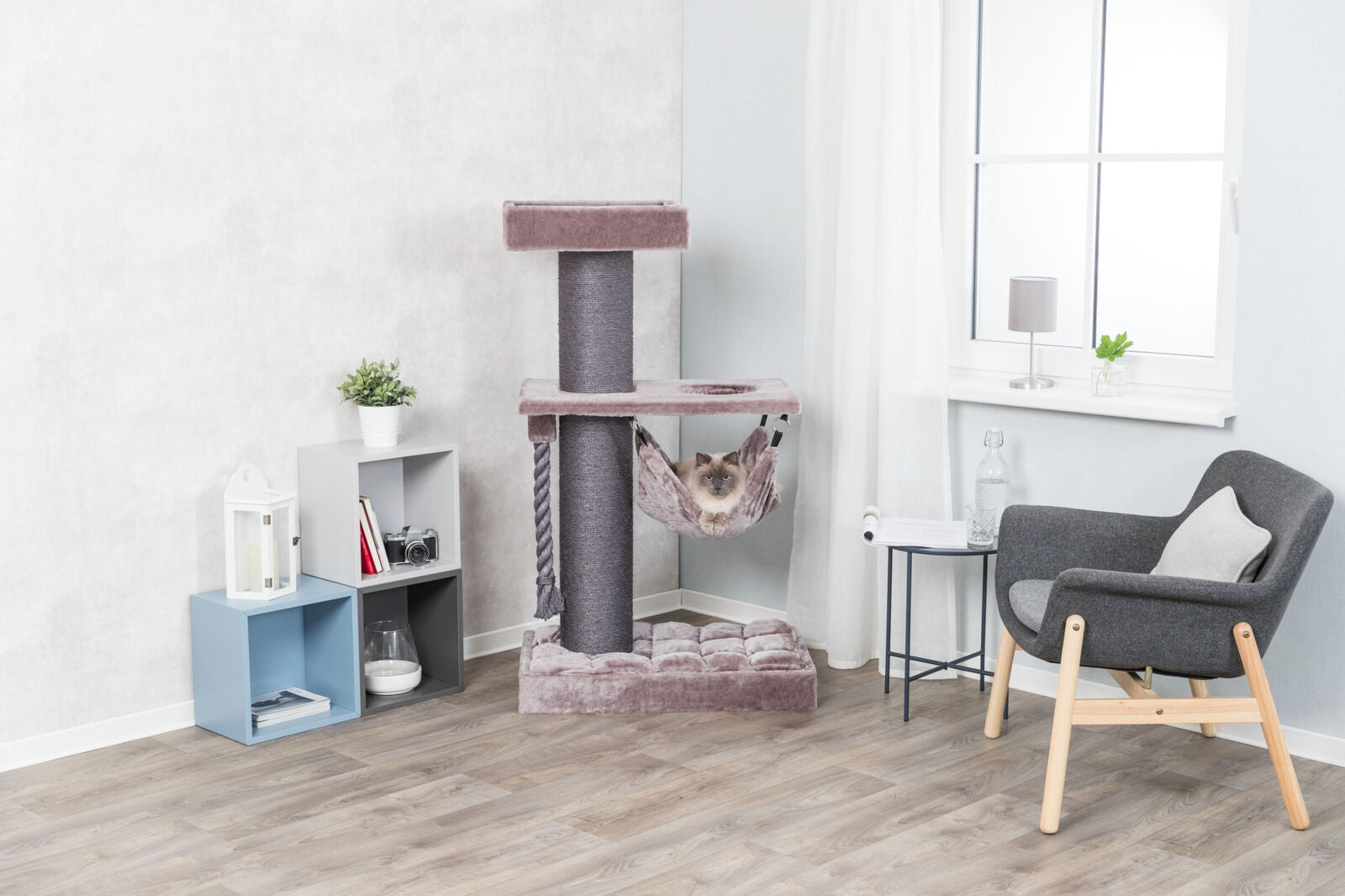 Kratzbaum XXL Ramon - cappuccino / Art.-Nr.: 44703, Grundfläche: 78 × 48 cm, Höhe: 133 cm, Stamm: ø 20 cm, Maße: 133 cm, Gewinde: M8