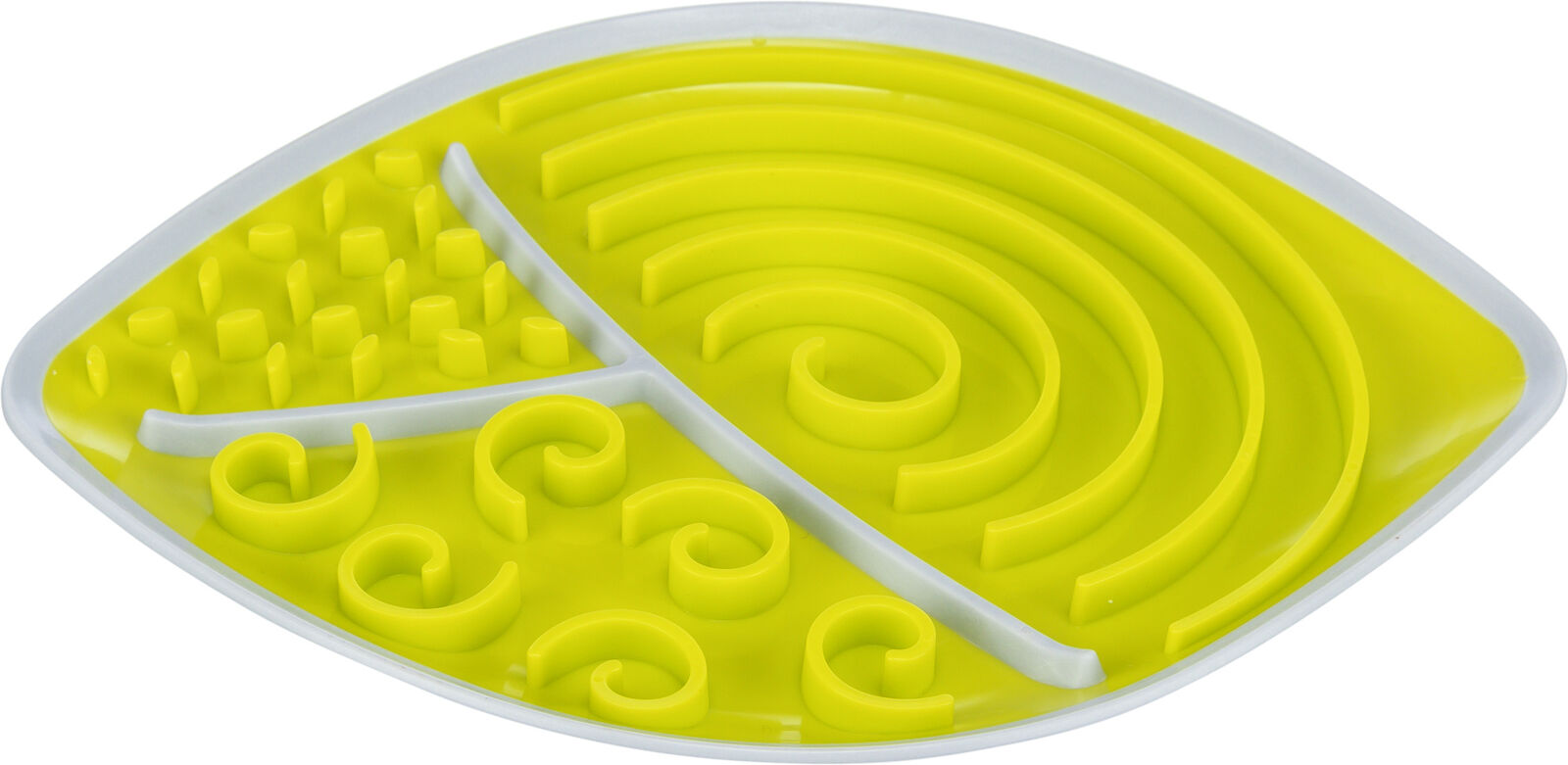 Schlecken entspannt Hunde und sorgt für Ruhephasen. Ein optimales Hilfsmittel für diesen Zweck ist die Lick'n'Snack Schleckplatte: Durch die kleinen Öffnungen bzw. Rillen nimmt dein Vierbeiner nur kleine Mengen an Snacks auf einmal zu sich und ist lange beschäftigt. Du kannst die Platte mit unterschiedlichen Pasten und Molkereiprodukten oder auch Nassfutter bestreichen, die dein Hund anschließend genüsslich ausschlecken darf.