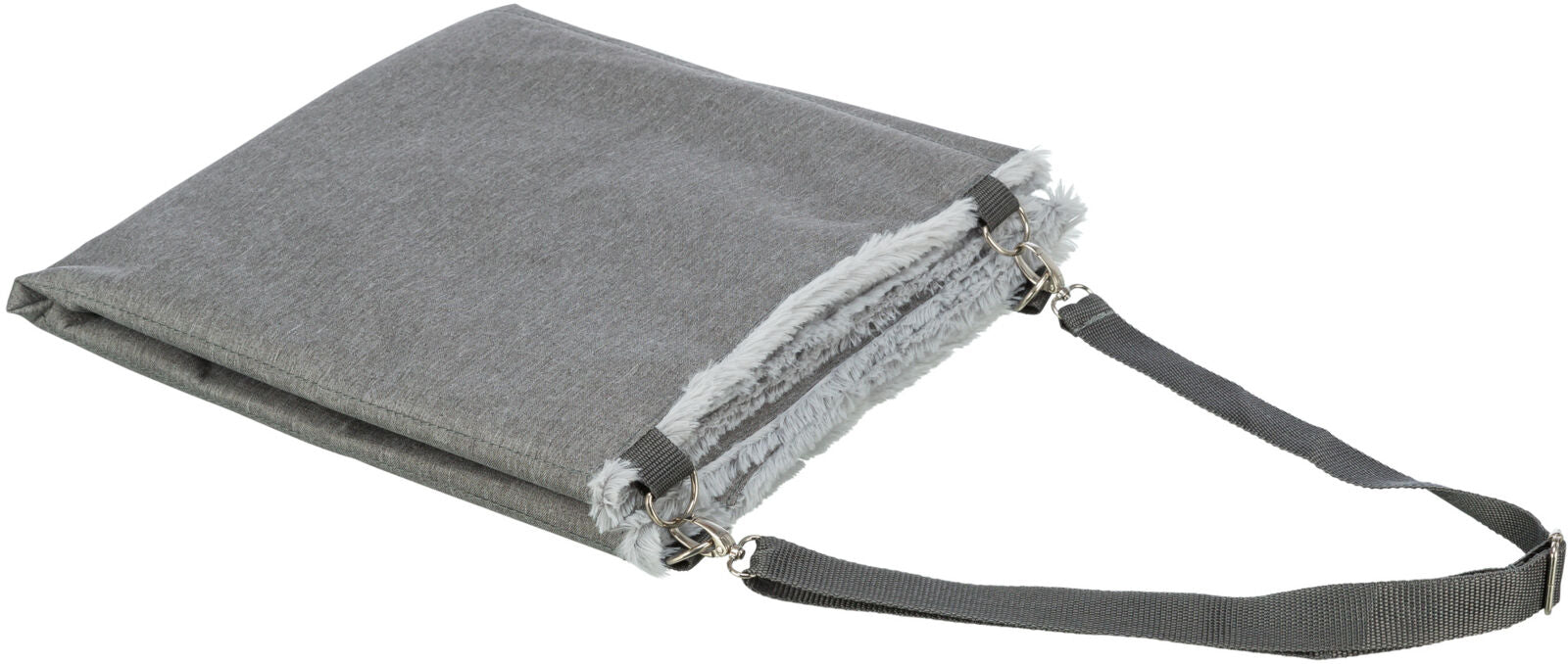 Die praktische Reisedecke lässt sich einfach zusammenfalten und mit einem Schulterriemen, der an Ösen der Decke befestigt werden kann, leicht transportieren.