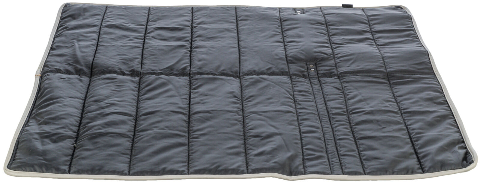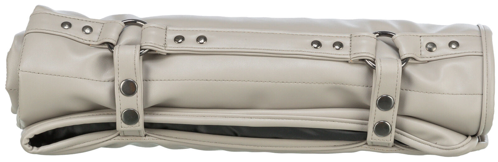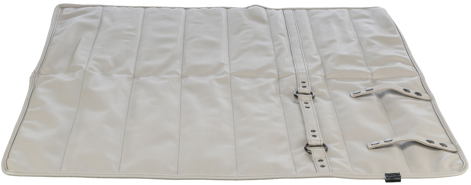 Unsere Reisedecke CityStyle ist ein echter Hingucker. Durch das Kunstleder und die Details mit Druckknöpfen und Riemen sieht sie besonders schick aus. Das Kunstleder ist zudem wasserabweisend und sorgt dafür, dass du die Decke zum Reinigen einfach nur abwischen brauchst. Die Füllung der Reisedecke ermöglicht einen angenehmen Liegekomfort für deinen Hund.Wird die Reisedecke nicht mehr benötigt, kann sie platzsparend zusammengerollt und mithilfe der Druckknöpfe verschlossen werden. Für einen einfachen Transport ist ein Tragegriff an der Decke befestigt, der aber auch abgenommen werden kann, falls du ihn nicht nutzen solltest.